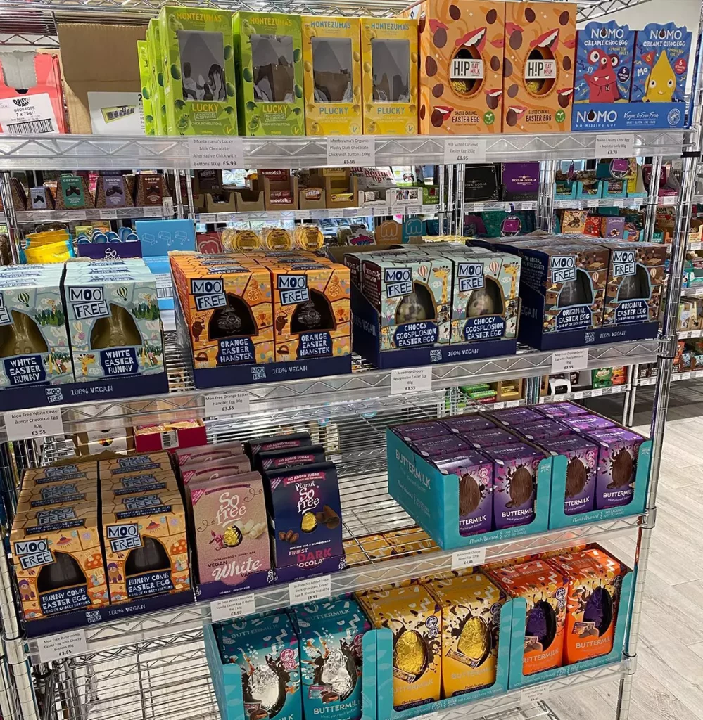We offer the best vegan products including hard to find vegan foods and grocery, vegan cheese, free from foods, chilled, frozen, sweets, vegan shoes, chocolates, fresh foods, t shirts, Sosmix, vitamins & minerals, health & beauty, eco living, refills, household items and so much more.