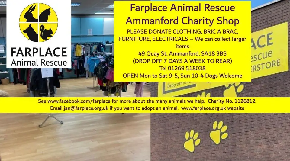 Farplace Animal Rescue charity shop selling donated furniture, clothing, electricals, bric-a-brac etc