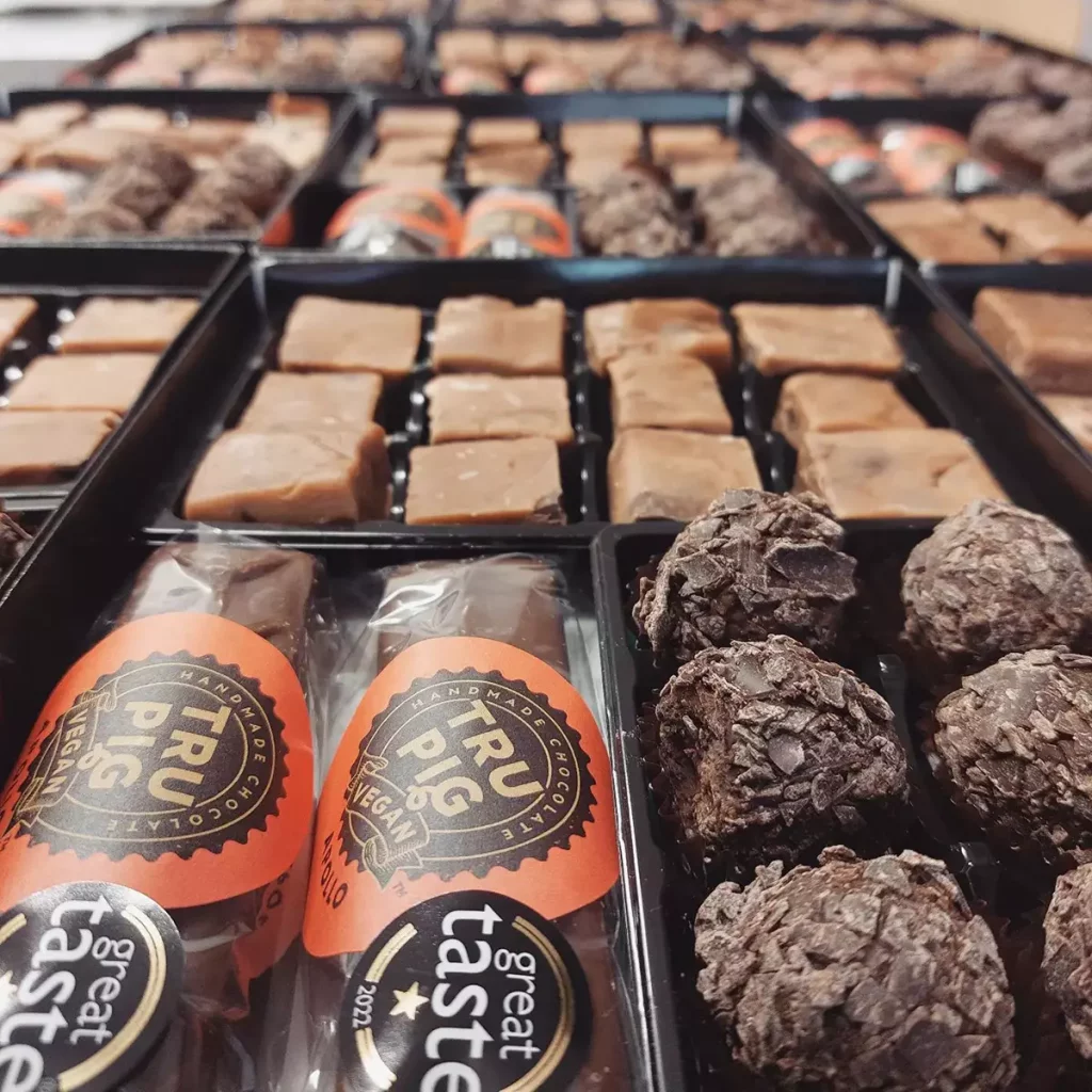 We are a vegan couple from Sheffield that love chocolate nearly as much as we love animals. We first started making truffles in 2016 as gifts for friends and family, these proved so popular Trupig Vegan was born. We now make our multi award winning chocolate goodies from our kitchen in Kelham Island.